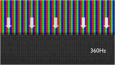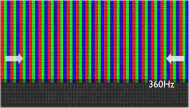 传统液晶驱动是从左到右单向进行,,,在画面更新速度愈来越愈快的情况下,,位于驱动线路末端的右下角区域,,,,画素的闸极来不及在短时间内获得足够电压,,,无法显示出正确的颜色资讯。。