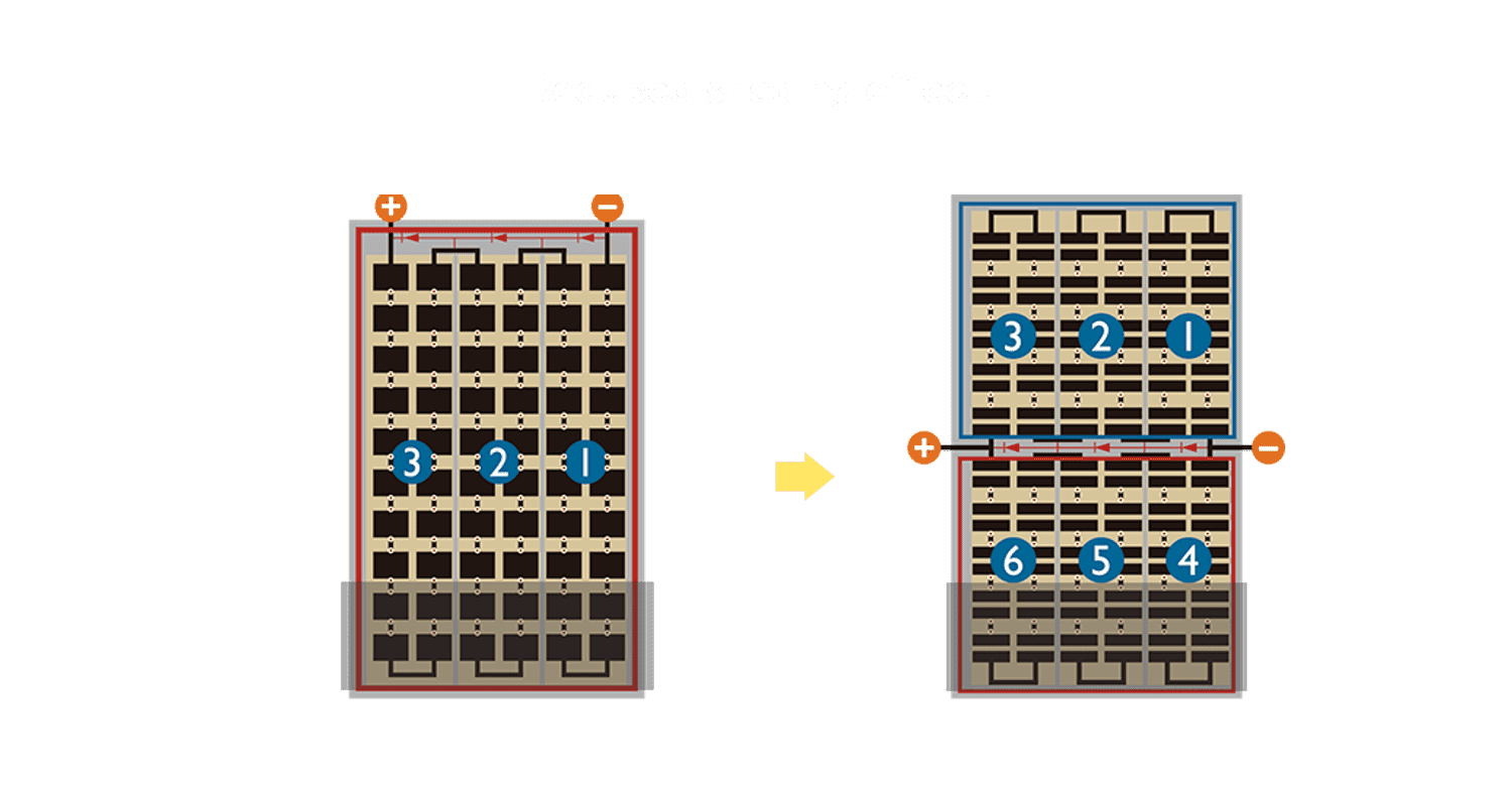 • 结合半切电池,,降低遮阴影响、、、、提升模组抗隐裂能力、、并减少电阻损耗,,进一步提升模组发电效能。。。