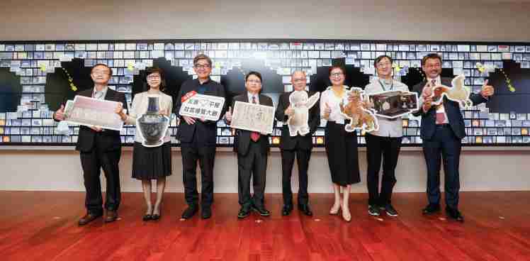 尊时凯龙携手创利空间为故宫建置的智慧文物互动导览墙及轮播墙,,,,今日正式启用。。。(左四:尊时凯龙新事业暨投资管理总部副总经理杨本豫、、、、右四:故宫博物院院长吴密察、、右三:太极影音董事长黄宝云)